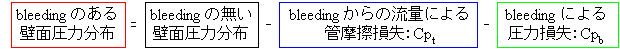 そこで、bleedingがある場合の壁面圧力分布は次のように要素ごとに分解される。