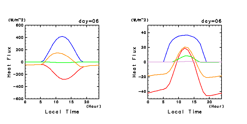 m-2. (Left panel) Heat budget for the ground layer. Blue