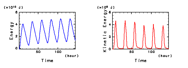 Time series for total energy (left panel) and total kinetic energy (right panel).