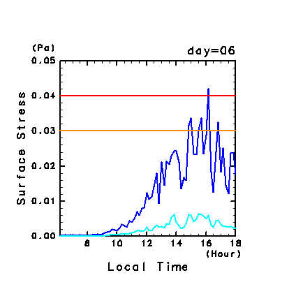 around 0.005 Pa. However, the maximum value of surface stress at each